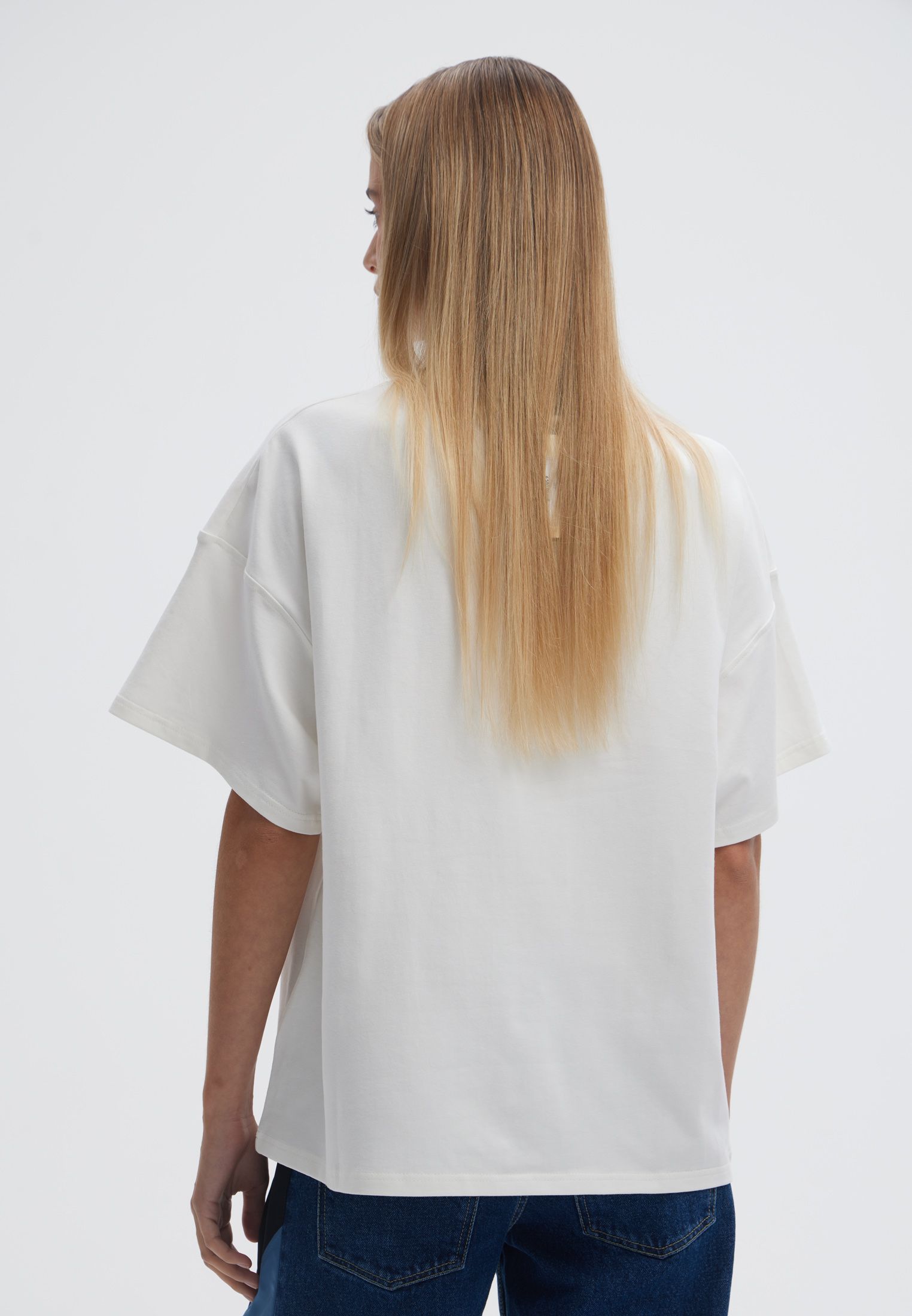 Футболка oversize из хлопка, в молочном цвете, с авторским принтом