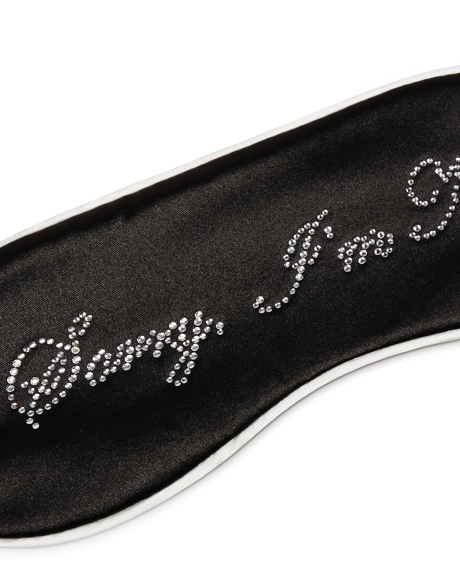 Маска для сна из искусственного шелка черного оттенка. Логотип из страз
