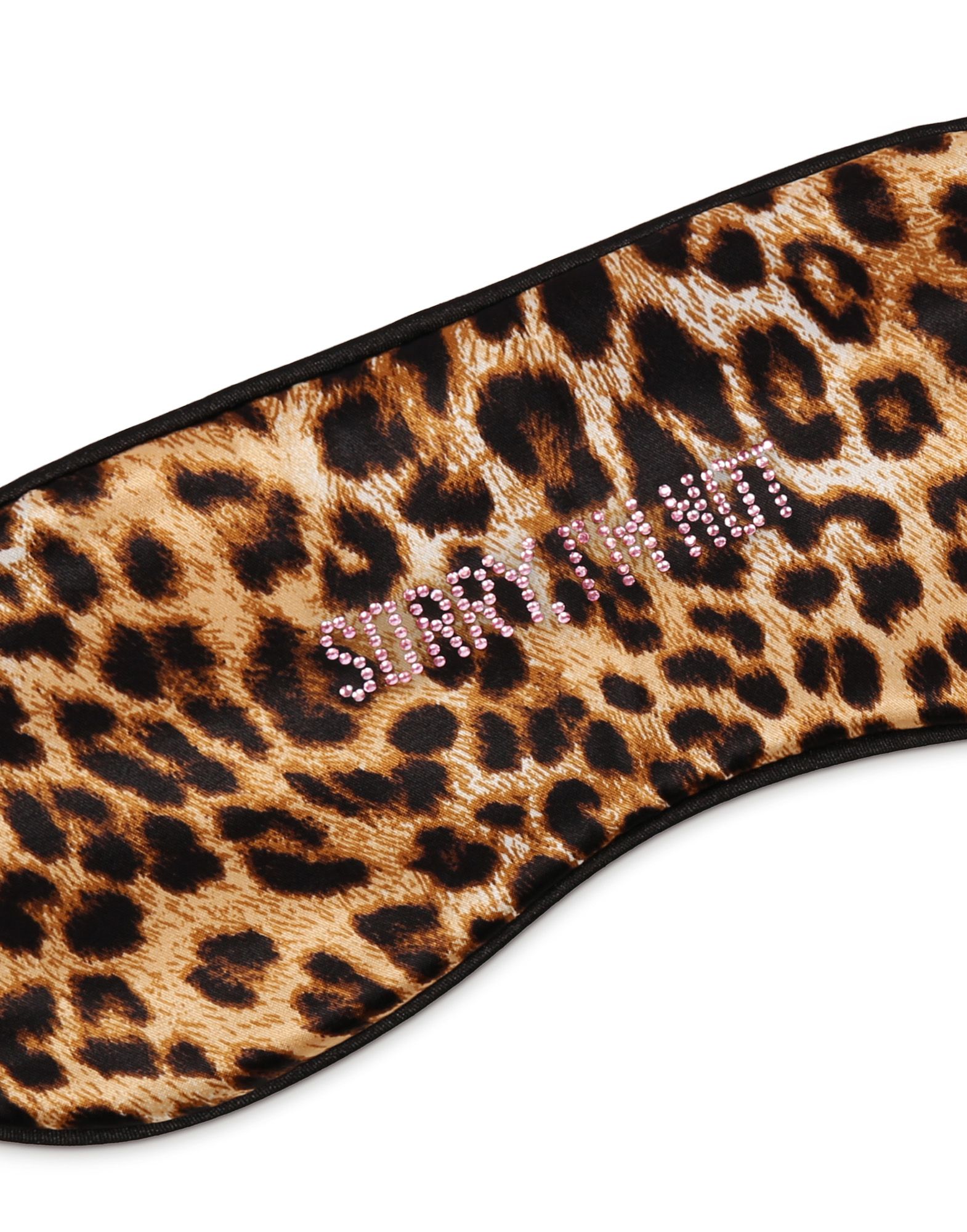 Маска для сна из искусственного шелка леопардового оттенка. Логотип из страз