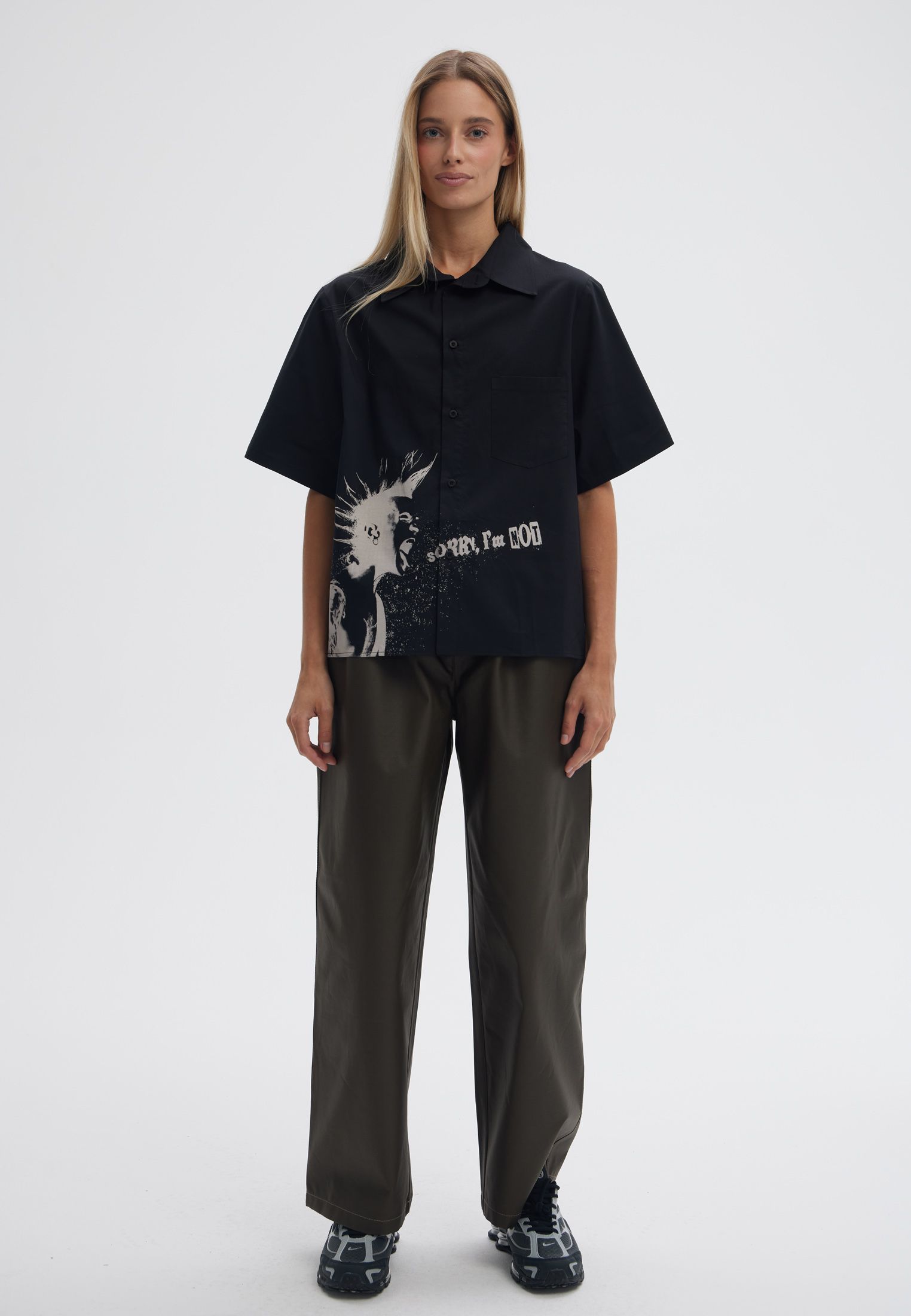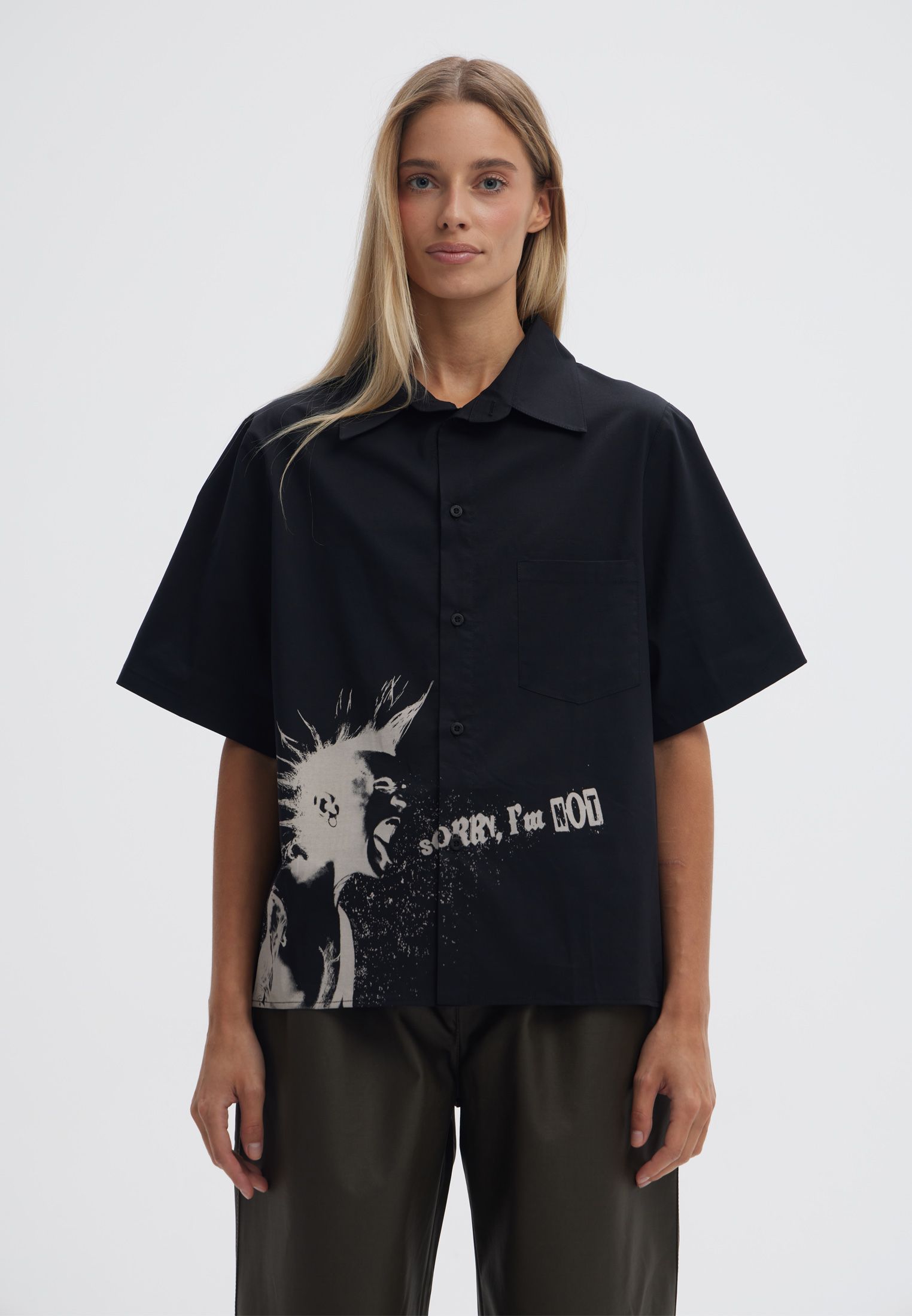 Рубашка PUNK с коротким рукавом в черном цвете с авторским принтом